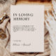 Sage Boho In Loving Memory Sign Modelo Honor a memória de seus entes queridos com este lindo carinhoso sinal de memória modelo. A elegante e moderna design minimalista complementará qualquer decor de casamento, e servirá como um tributo comovente para aqueles que passaram. Mostre-o na sua cerimônia ou recepção para manter sua memória próxima no dia do seu casamento.