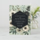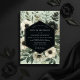 A captivating sage-green backdrop showcases delicate, muted florals with dark centers and airy eucalyptus leaves. The ethereal design evokes a sense of natural romance and timeless elegance, perfect for a serene wedding occasion.