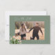 Moderno salve o cartão de data com um cacto e uma imagem aquosa suculenta e uma caligrafia moderna em um plano de fundo de sábio. A parte traseira da placa apresenta um quadro colorido, a foto do casal e algum texto.