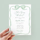 Este design de chá de panela "Ela é Casando" é elegante e tendencioso, apresentando um arco de fita popular em verde-sábio. Isto foi pintado manualmente em aquarelas antes de ser digitalizado em forma digital. O inverso do convite é um simples sorvedouro verde e branco que se estende por trás.