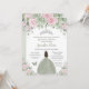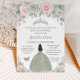 Convites Sage Green Baby Pink Floral Silver Quinceañera