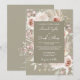Este Convite Floral Russo Verde de Boho Sage está a fazer tendências num champanhe de paleta de cor suave e tons de terra de marfim num fundo verde sagaz. Apresenta belos rosas de pincel e marfim e flores com palmas secas e verde de eucalipto com sotaques de ouro falsos. Esta bela paleta de cores é perfeita para primavera, verão ou casamento outono. Personalize com todos os detalhes do seu casamento.
