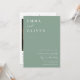 Este convite apresenta uma fonte de tipografia serif e caligrafia em bloco, limpa e simples, num fundo verde sage. A simplicidade e a design limpa deste convite funciona bem com todos os temas de casamento e definitivamente uma adição excelente ao seu casamento. Tente se tornar ecológico com este convite moderno, tudo em um, ecológico, reduzindo o RSVP adicional e os cartões de detalhes. Basta adicionar seu próprio código QR à parte traseira do convite para seus convidados para RSVP e descobrir mais informações sobre seu casamento. Personalize os nomes e o texto em apenas alguns passos fáceis e personalize o cartão de convite com sua foto do casal feliz para lhe dar um toque exclusivo e pessoal. Note-se que a elegante caligrafia dos termos "e" e "detalhes + rsvp" não pode ser editada, suprimida ou movida. Eles estão consertados. Se precisar alterar a cor, você pode personalizar o cartão de convite. Você pode personalizar e personalizar o convite para ajustado das suas necessidades de evento de casamento e clicar em personalizar o convite. Você pode personalizar facilmente este convite com seu próprio texto e compartilhá-lo com seus convidados digitalmente — seja através de texto, email ou mídia social. Se preferir, você também tem a opção de enviar uma versão impressa para seus convidados. Ou, você pode fazer ambos — enviar uma versão digital e acompanhar com uma cópia impressa para um toque pessoal!
