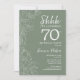 Sage Green Botanical Surprise 70 Convite de Aniversário. A design feminina moderna minimalista apresenta sotaques botânicos e letra de script de tipografia. Simples cartão de convite floral perfeito para uma festa surpresa na moda.