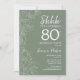Sage Green Botanical Surprise 80 Convite de Aniversário. A design feminina moderna minimalista apresenta sotaques botânicos e letra de script de tipografia. Simples cartão de convite floral perfeito para uma festa surpresa na moda.