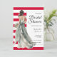 Convites Sage Green Bride Cherry Red Stripes Chá de panela