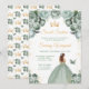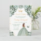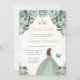 Este elegante e glamouroso e doce convite de 16 anos apresenta uma bela princesa com cabelo castanho em um vestido verde-sábio. O texto combina o script manuscrito e as fontes sans serif modernas para um aspecto elegante e sofisticado. Os arranjos florais, borboletas e confete de ouro criam a mistura perfeita de rústicos e quicos. Gráficos por www.etsy.com/uk/shop/SunflowerDayLove