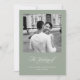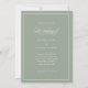 Este elegante convite de casamento verde sábio apresenta estilo clássico, antigo, com caligrafia branca romântica e sua própria foto pessoal. A parte de trás do cartão mostra todos os detalhes do seu casamento, cercado por uma delicada estrutura branca moderna. Ponha o tom para o seu luxo e sofisticado casamento italiano inspirado nesta design minimalista e elegante.