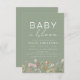 Convites Sage Green Código QR Flor Selvagem Bebê em Chá Blo