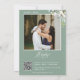Este convite à festa de noivado apresenta um elegante estilo minimalista moderno com folhas de folhagem verde-aquática e belas caligrafias e fontes de tipografia limpa e serif num fundo verde-sábio. A simplicidade desta design adiciona um toque de elegância ao seu casamento. Funciona bem com muitos temas de casamento e definitivamente um excelente extra para o seu casamento. Basta personalizar os nomes e o texto em alguns passos fáceis e personalizar o cartão de convite com sua foto do casal feliz e substituir o Código QR pelo seu no verso do convite para dar um toque pessoal agradável ao seu convite. Nota: As belas e elegantes expressões tipográficas de "festa de noivado" e "gentilmente rsvp para" na frente do convite E "registro de presentes" no verso do convite juntamente com a cor d'água verde folhagem eucalipto folhas arranjos e outros elementos gráficos de trabalho de arte como as linhas e caixas retangulares não podem ser editados, alterados, movidos ou eliminados. Eles estão consertados. Se precisar alterar a cor, você pode personalizar o cartão de convite. Você pode personalizar e personalizar o convite para ajustado das suas necessidades de evento de casamento e clicar em personalizar o convite. Você pode personalizar facilmente o convite com o texto como um download digital e enviá-lo eletronicamente e compartilhá-lo com seus convidados através de mensagem de texto, email ou mídia social. Ou também pode optar por enviar/postar o convite relativo aos seus detalhes aos seus convidados. Ou você pode receber ambos — convite impresso e receber o convite em formato digital como um download instantâneo.