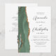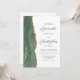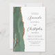 A borda esquerda deste elegante convite de casamento moderno apresenta um sábio verde aquarela agate bordado com falsa brilho dourado. O texto personalizável combina o script de cinza de carvão e as fontes sans serif em um fundo branco. O verso oferece espaço para detalhes do casamento, juntamente com um código QR que os convidados podem digitalizar para visitar seu site e RSVP, o que economiza o custo de impressão e envio de cartões RSVP separados.