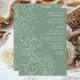 Este elegante convite para o casamento apresenta um delicado design floral ornamental com flores, aves e folhas sobre fundo verde-sábio. O texto combina o script manuscrito e as fontes serif para uma aparência na moda e moderna. Perfeito para um casamento outono de inverno ou outono.