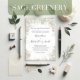 Celebre seu grande dia com esses convites de casamento verdes sábios com elegantes verdes verdes verdes e eterno clássico de botânica. Perfeito para um evento formal, essa modelo apresenta um roteiro caligráfico gracioso, tipografia limpa e um monograma personalizado de volta para um toque adicional de sofisticação. Com simples estilo e delicada a natureza deixa a folhagem, este download imprimível oferece um convite bonito, inspirado na natureza, que combina elegância com facilidade.