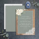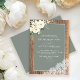 Entra num mundo rústico e sonhador com o nosso convite para casamentos de madeira verde Eucalyptus branca Floral de Sage. Este convite elegante — projetado para acomodar pais e casais que alojam o casamento — apresenta uma combinação encantadora de elementos rústicos e botânicos, incluindo delicados verdes de eucalipto, florais brancos pristos e texturas de madeira honrada. A tipografia escrita à mão adiciona um toque de elegância, enquanto a matiz verde cria um senso de sofisticação da terra. Perfeito para casais que querem infundir seu casamento com beleza natural, esse convite certamente deixa os convidados encantados. Veja o pacote de cheios aqui: https://www.zazzle.com/collections/sage_green_eucalyptus_lace_wood_wedding-119914561691834427 Copyright Anastasia Surridge for Elegant Invites, todos os direitos reservados.