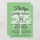 Envie um convite de reunião da família verde com uma silhueta de árvore branca e campos de texto personalizáveis para todas as suas informações de reunião.