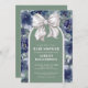 A cute and elegant gender neutral baby shower theme featuring a soft sage green background on both sides for a calm, modern look. The design includes a charming watercolor bow paired with an arch detail, accented by navy blue floral artwork for a refined, timeless feel. The navy florals add contrast while keeping the overall palette balanced and versatile.
