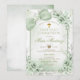 Convites Sage Green Floral Boy Cross First Holy Communion