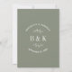 Um simples e na moda monograma, design de casamento verde e branco minimalista para o casal feliz. O texto da tipografia da design é personalizável e pode ser personalizado com os nomes e as iniciais da noiva, do noivo e da data e local do casamento. Você pode alterar a fonte, a cor da fonte, o tamanho da fonte e a cor do plano de fundo usando a Ferramenta Design. Seja um primavera, verão, outono ou casamento no inverno, o design é seu para personalizar e personalizar como quiser.
