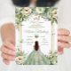 Convites Sage Green & Ivory Floral Princess Quinceañera