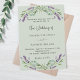 Um fundo verde sábio decorado com flores lavandas e verde de eucalipto. Personalize e seus nomes e detalhes.