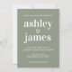 Sage Green Minimalist Wedding Invitation card featuring crisp white serif typography on a soft sage green background. The clean, balanced layout highlights the couple’s names with elegant hierarchy, making it ideal for modern weddings, garden ceremonies, and timeless formal celebrations. A refined choice for couples seeking understated elegance with a natural, neutral color palette. Easily personalize with your details.