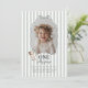 Celebrate your little one's Goose themed first Birthday with this easy to edit template. Featuring a playful wavy bow border with your own custom photo inside. There is a sweet little goose with a green bow on it in the corner, along with 'One silly goose' typography, along with a sage green stripy background.