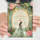 Sage Green Princess Dress Dourada Forest Mis Quince Convite Quinceanera 15 Anos, 16º aniversário Dourada Borboleta