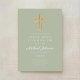 Convites Sage Green Religious Cross Boy First Communion