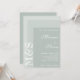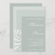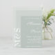 Simples e moderno roteiro de chic convite para noivas que estão adorando suas cerimônias em verde-sábio. Tudo definido em uma fonte branca moderna com iniciais laterais.