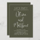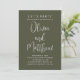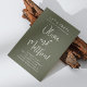 Convite de casamento e detalhes do script de tipografia com o Código QR no lado traseiro em tons de verde-sábio escuro. Ideal para floresta florestal ou casamento de jardim. Entre em contato comigo se precisar de itens adicionais.