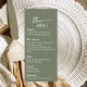 Elevate your reception table setting with this Elegant Sage Green Wedding Menu Card.
