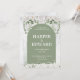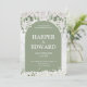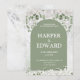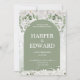 Este elegante convite para o casamento apresenta um sofisticado fundo verde sábio adornado com florais brancos e suaves, criando uma estética botânica minimalista e fresca. Perfeito para jardins, ao ar livre, rústico e casamentos naturais. Esta design traz um toque de beleza natural e elegância eterno ao seu dia especial.