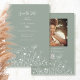 Este fundo verde sábio com flor branca de flor silvestre é mínimo e moderno. Sua foto no fundo é filtrada por uma elegante ambição. O código de QR facilita aos seus convidados a obtenção dos detalhes do seu dia especial