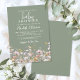 Muted Pastel Boho Botanical Garden Baby Shower Invitation. Celebrate the mom-to-be with this elegant boho design featuring a sage green background on both the front and back for a calm, earthy, and timeless look that works beautifully from spring through autumn. At the top, “Baby Shower” is displayed in a refined mix of script and serif typography in crisp white for an elegant yet modern feel.