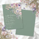 A Little Wildflower Is On The Way Baby Shower Invitation. Celebrate the parents-to-be with this soft, elegant design featuring sage green backgrounds on both the front and back for a calm, natural, and timeless look. The phrase “A Little Wildflower Is On The Way” appears at the top and can be changed to another phrase or removed for a more simple, minimal style.