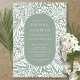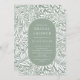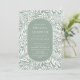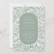 Padrão de folha e flor moderno com um na moda oval que enquadra as informações do seu partido em verde e branco sage.