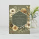Experience an air of earthy elegance with this sophisticated botanical design. A soft sage green background provides a moody canvas for a beautiful arrangement of cream anemones, golden ochre marigolds, and delicate foliage. This artistic composition blends a vintage aesthetic with a modern botanical sensibility, perfect for a refined and naturalistic union.