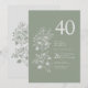 Convite de Aniversário de 40 anos Floral Mínimo Botânico Sage Verde | Convites de Aniversário Adulto | Convites Botânicos Mínimos Sage Verde Azul 40º | Celebração de Quadragésimo Aniversário