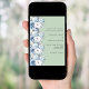 Um fundo verde sábio, decorado com flores azuis empoeiradas e brancas. Personalize e adicione seus nomes e detalhes.