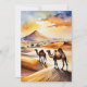 Este postal apresenta um retrato aquoso de dois camelos que caminham pelo deserto do Saara.