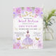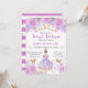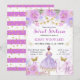 Um convite de Sweet 16 sonhador em tons pastel de roxo e dourado, apresentando uma linda bailarina de cabelos vermelhos em um tutu roxo suave, rodeada por flores em aquarela, borboletas, sapatilhas de ballet e detalhes de festa caprichosos. Acentuações de luzes de corda e tipografia elegante de fontes mistas destacam as informações da celebração, enquanto toques delicados de dourado adicionam um brilho mágico e feminino. A paleta pastel suave, a silhueta graciosa da bailarina e as ilustrações florais criam um convite encantador, jovem e elegante, perfeito para uma celebração de Sweet Sixteen com tema de ballet ou princesa.