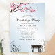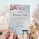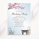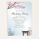 Convite de aniversário de Flor de Cereja Japonês Sakura. Esta design apresenta uma bela sakura rosa, galhos florescentes de cereja japonesa contra um fundo azul-céu. Acentuado com bambu. Personalize este design personalizado com seus próprios detalhes.