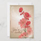 Um belo e simples convite para o casamento, com salmões e flores vermelhas em um fundo brilhante, estrelado, bege borbulhante com sotaque dourado. Personalize com seus detalhes de casamento. Por favor, me mande mensagem se precisar de ajuda com esta design e criar seu convite perfeito para o casamento.
