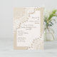 Lace branco elegante com pérolas, convite jante para ensaio de casamento, com rendas brancas em bege de areia que cobrir dois cantos de um retângulo branco com borda bege. Texto em castanho. Observe que o local é "impresso" e não é tecido real. Este elegante, sofisticado e romântico design é parte de um jogo de casamento e é perfeito para um primavera chic, verão ou outono/outono com uma paleta de cores neutras.