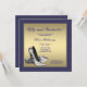 Sapatos de salto alto azul marinho e dourado convite de festa de cinquenta anos de idade da mulher. Este lindo convite de festa de aniversário feminino azul e dourado é facilmente personalizado para o seu evento, adicionando os detalhes do seu evento, estilo de fonte, tamanho e cor da fonte e texto. Por favor, note que todos os adesivos, cartões e desenhos de convites que você encontrará no Zazzle são gráficos impressos sem joias, laços, relevos, dourados ou peças adicionais.