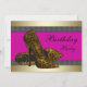 Sapatos de salto alto rosa vibrante e convite de festa de aniversário estampado com onça rosa. Este convite de festa de onça rosa funciona bem para uma despedida de solteira, chá de noiva, aniversário de mulher de 21, 25, 30, 35, 40, 45, 50, 55, 60, 65 anos, e qualquer outro número de aniversário. Este convite de festa de aniversário estiloso com onça rosa funcionaria bem como convite de festa de aniversário de sweet sixteen ou convite de Quinceanera e é facilmente personalizado para o seu evento, bastando escolher o botão "Personalize!" para começar a adicionar os detalhes do seu evento, estilo de fonte, tamanho e cor da fonte e texto. Por favor, note que todos os enfeites de bolo, cartões e desenhos de convite que você encontrará na Zazzle são gráficos