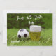 Convite de salvar no futebol com cerveja na grama verde para jogador e fã de futebol. Com um design impressionante e sentimento simples, este cartão é uma maneira memorável de desejar a uma das pessoas favoritas um momento feliz.