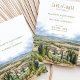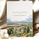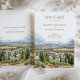 Anuncie o seu casamento com este cartão de "Salvar a Data", com uma imagem impressionante de Borgo di Castelvecchio, Toscana, Itália. O cartão apresenta uma mistura harmoniosa de matizes suaves, incluindo o verde-oliva, o bege-ouro e o terracota quente. O detalhado trabalho de arte de aquarela captura a essência do campo da Toscana com suas colinas rolantes, ciprestes, e vilas encantadoras, evocando um senso de romance e elegância rústica. Perfeito para casais planejando um casamento de destino, este cartão estabelece um tom convidativo e pitoresco para seu dia especial. Personalize com seus detalhes de casamento para uma primeira impressão inesquecível.