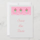 A design é de três buquês de casamento em um fundo cor-de-rosa com flores cor-de-rosa em um suporte branco em forma de cone com uma mensagem "Salvar a Data" abaixo delas. Uma bonito maneira de dizer, vamos nos casar, por favor, salve a data. design floral excelente para qualquer um que goste ou queira muito rosa para o seu casamento.