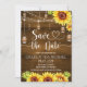 Dê aos seus convidados um lindo aviso prévio com este cartão de "Save the Date" de casamento rústico e deslumbrante com girassóis! Com vibrantes girassóis em aquarela, lanternas de jarro de pedreiro brilhantes, luzes de corda delicadas e bela caligrafia em um fundo de madeira escura rica e quente. Um design brilhante e romântico perfeito para casamentos no campo, cerimônias em celeiros, celebrações de verão e qualquer encontro ao ar livre cheio de calor e amor!